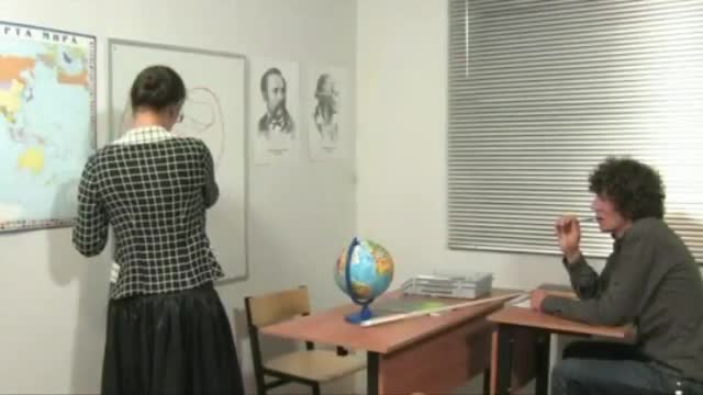 На дополнительном уроке по географии великовозрастный двоечник решил, что условное изображение континентов на плоскости, которое нарисовала училка больше похоже на сиськи, а не на глобус. Училка, возмущенная тупостью ученика тут же вывалила из кофточки свои сиськи и заявила, что они выглядят совсем иначе чем глобус. При этом, когда парень попросил потрогать их, она видимо для усиления эффекта разрешила. Ну а дальше как обычно, оба начали возбуждаться, обоим хотелось все более острых ощущений, когда центр внимания полностью сосредотачивается на женских и мужских гениталиях. После того как парень в продолжение урока мощно отъебал училку, она уже решила, что тему он усвоил хорошо и предложила на завтра продолжение занятий, на что получила радостное согласие. Надо полагать, что со временем этот парень хорошо усвоит не только географию, но и анатомию женского тела.