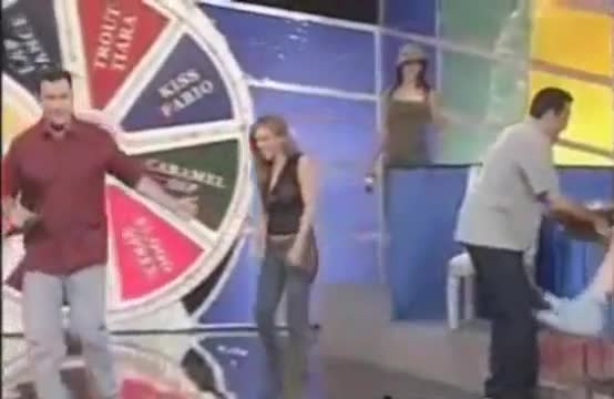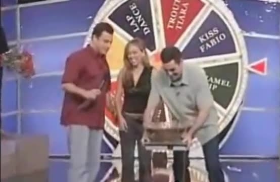 отрывок из комедийного шоу для взрослых, из колеса фортуны участнице выпадает обмакнуть грудь в растопленный шоколад.