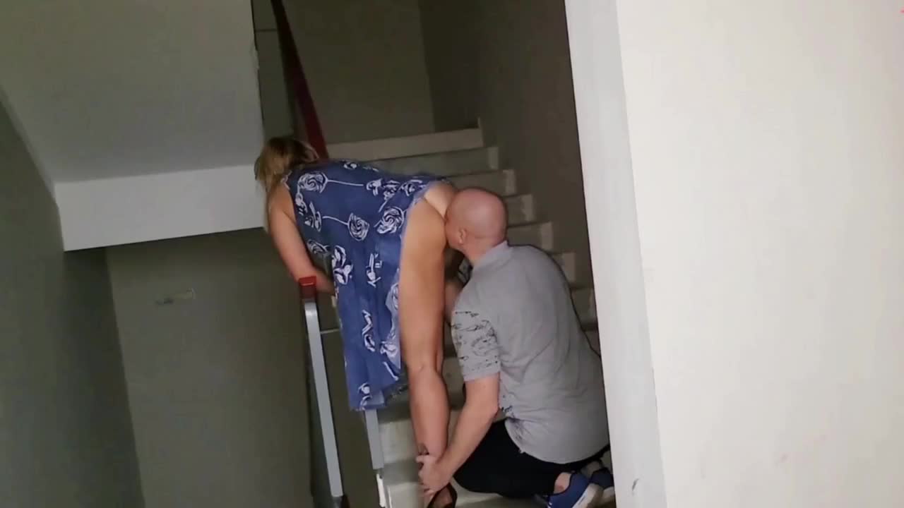 Отлизал своей бабе прямо на лестнице
