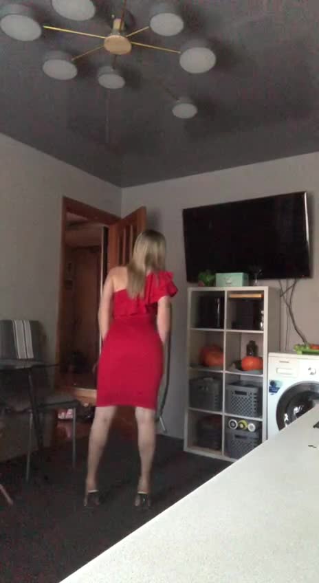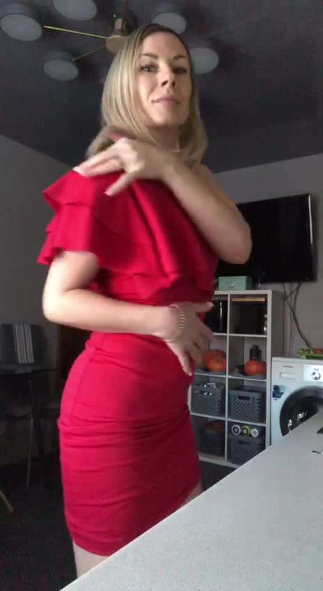 Под красным платьем у этой очаровательной блондинки тело просто бомба.