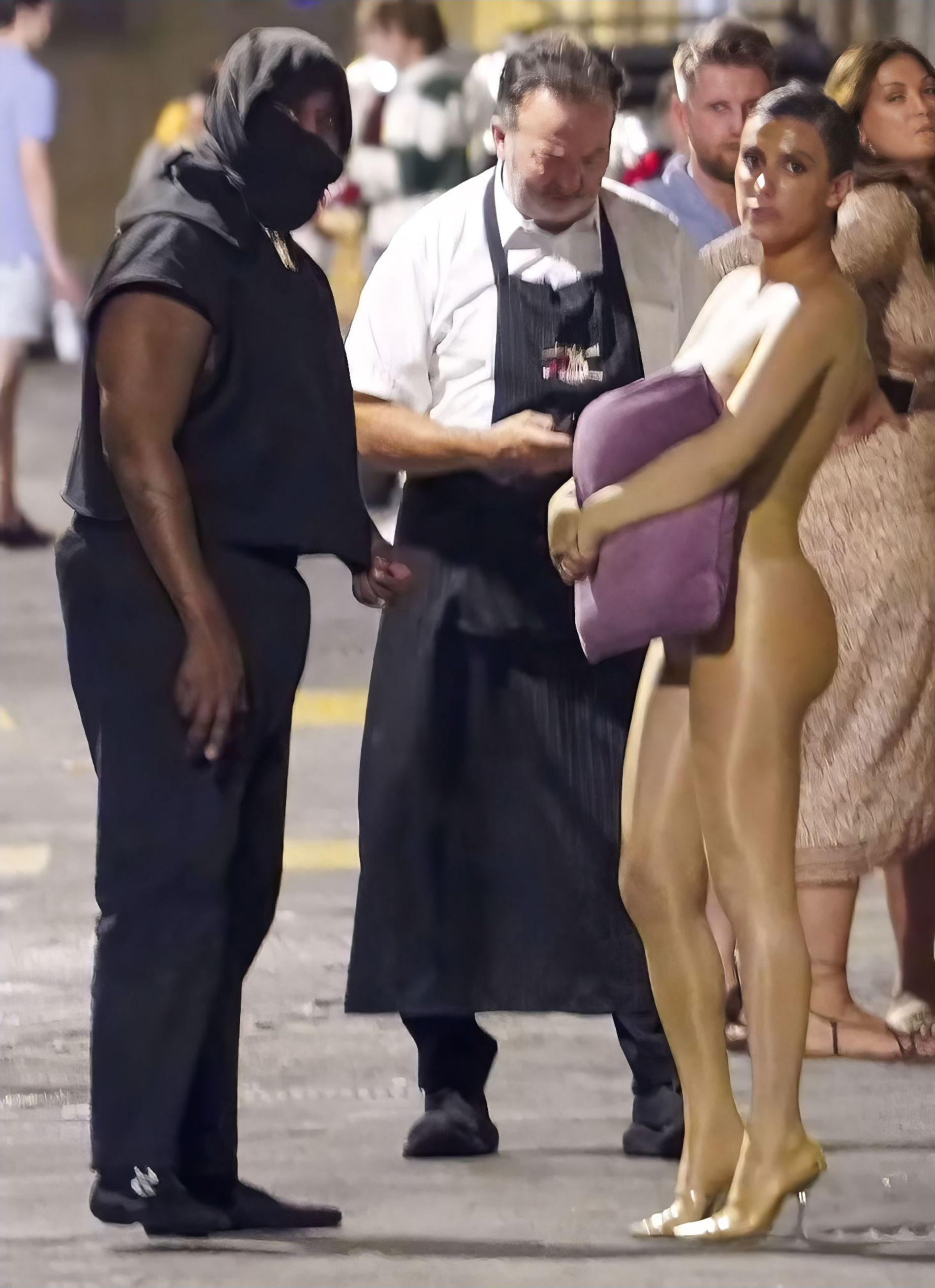 Бьянку заметили в одних колгоках и с подушкой, когда она и ее муж рэпер Канье Уэст выходили из своей гостиницы во Флоренции 6 сентября 2023 года.
