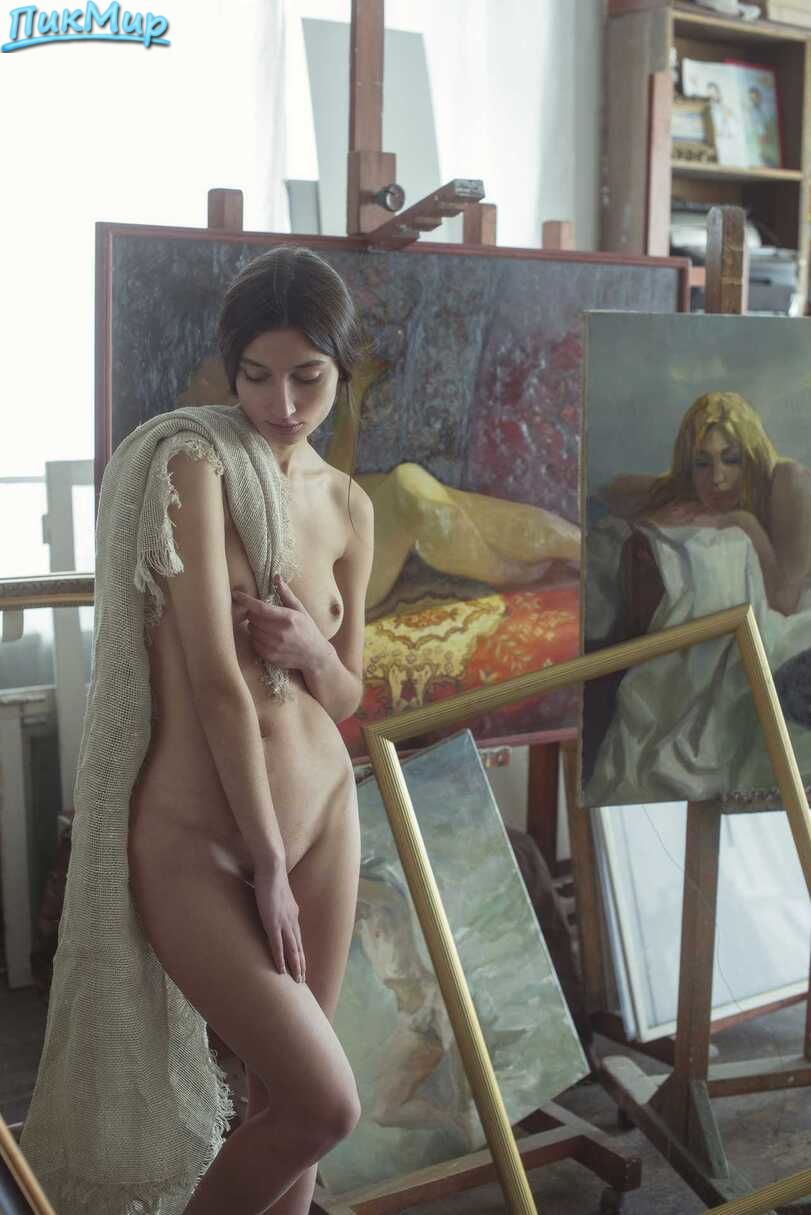 Красивая натурщица голая в мастерской