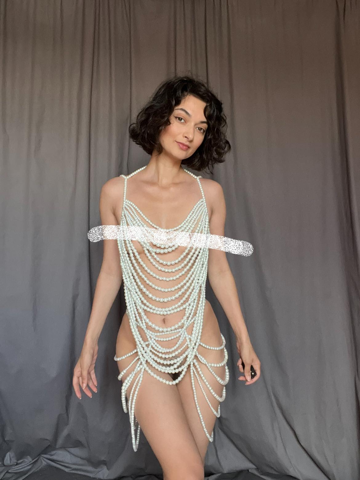 Из бисера прикольный наряд платье. Жаль только грудь,эффектом каким-то покрыли.