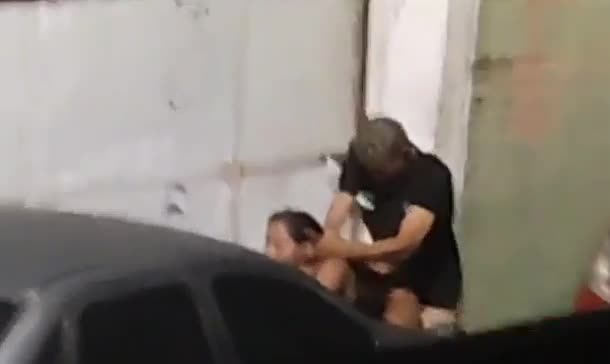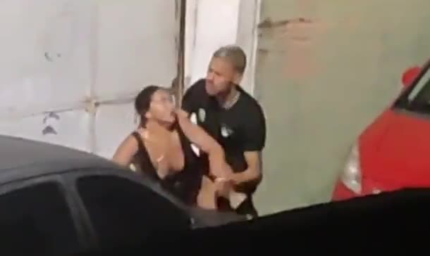Вечером чувак жестко трахнул страстную красотку на багажнике машины под лампой на всеобщее обозрение.
