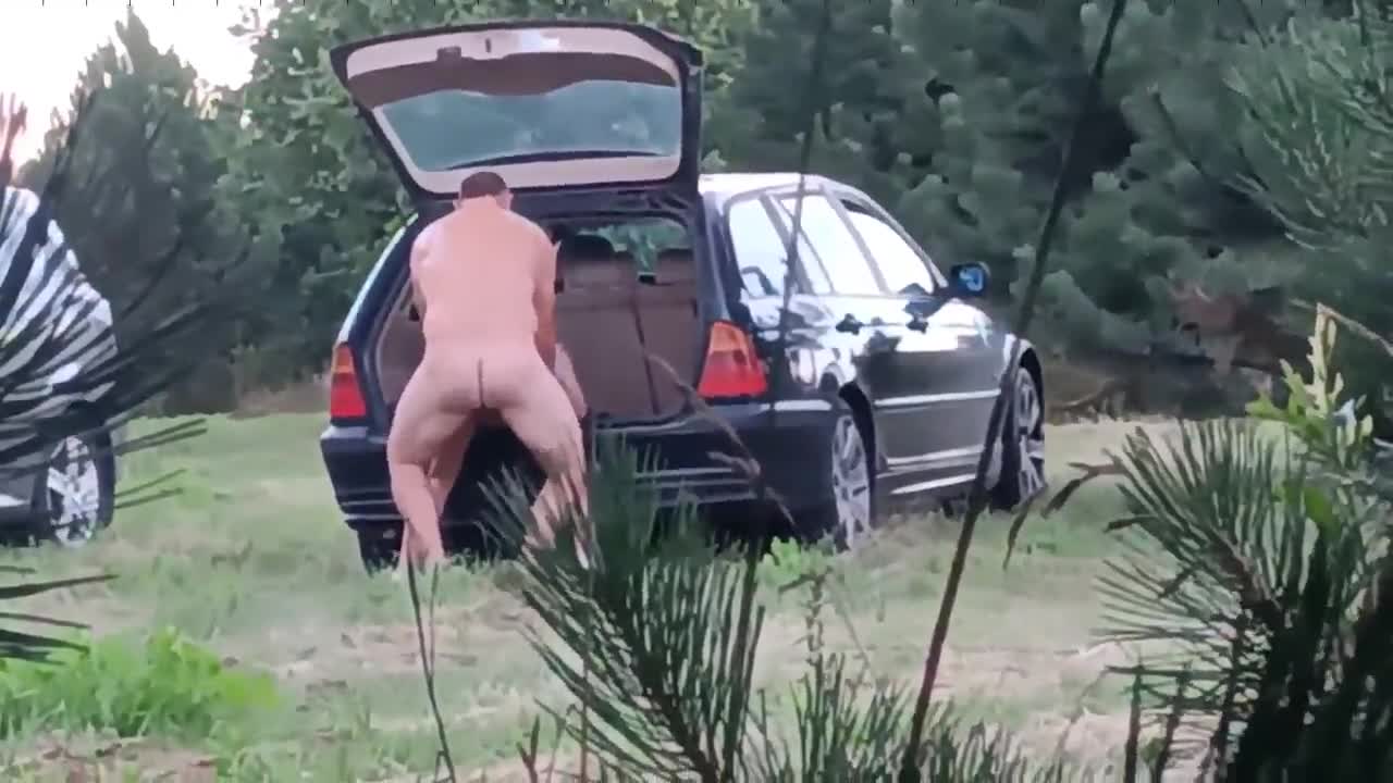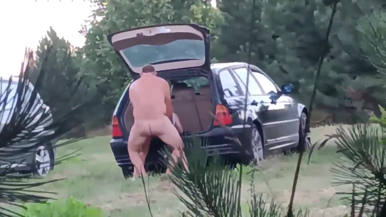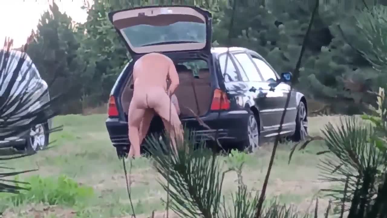 Любовники приехали каждый на своём авто и на природе занимаются сексом.