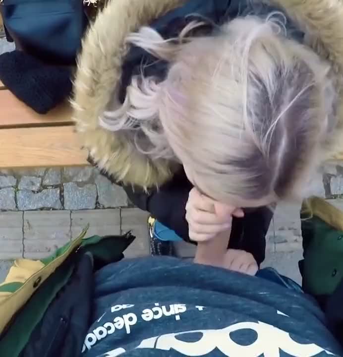 Сосет на лавочке