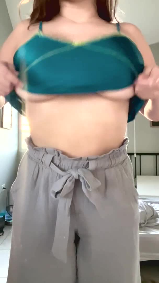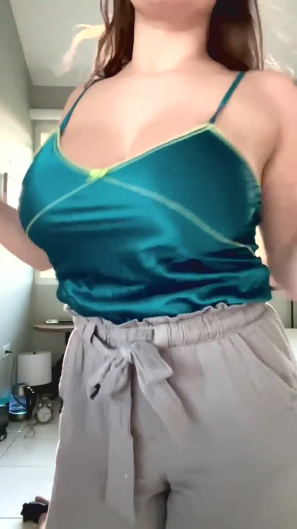 Зелёный цвет ей идёт.Даже скрадывает величину её бюста.