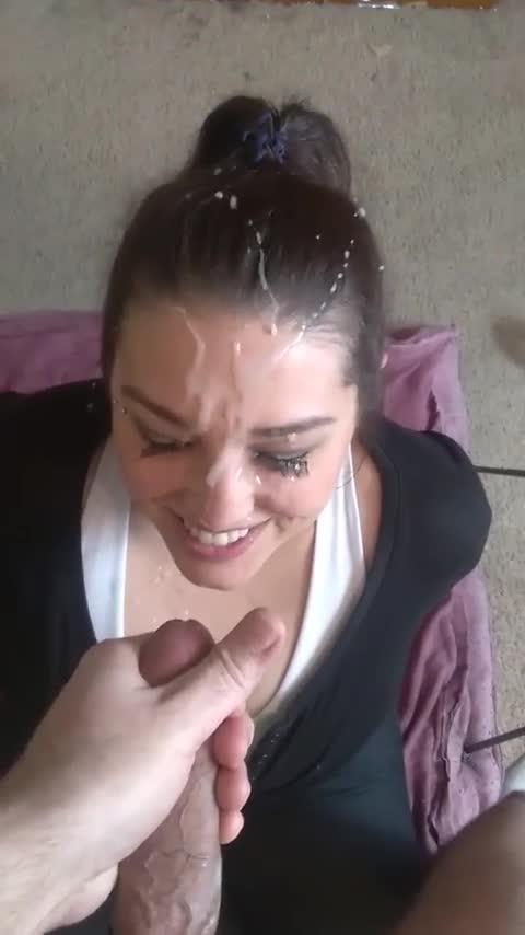 Прекрасная брюнетка с удовольствием поставила личико под мощный залп.