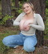 Прогуливаясь по лесу решила показать какая у неё белоснежная большая грудь.