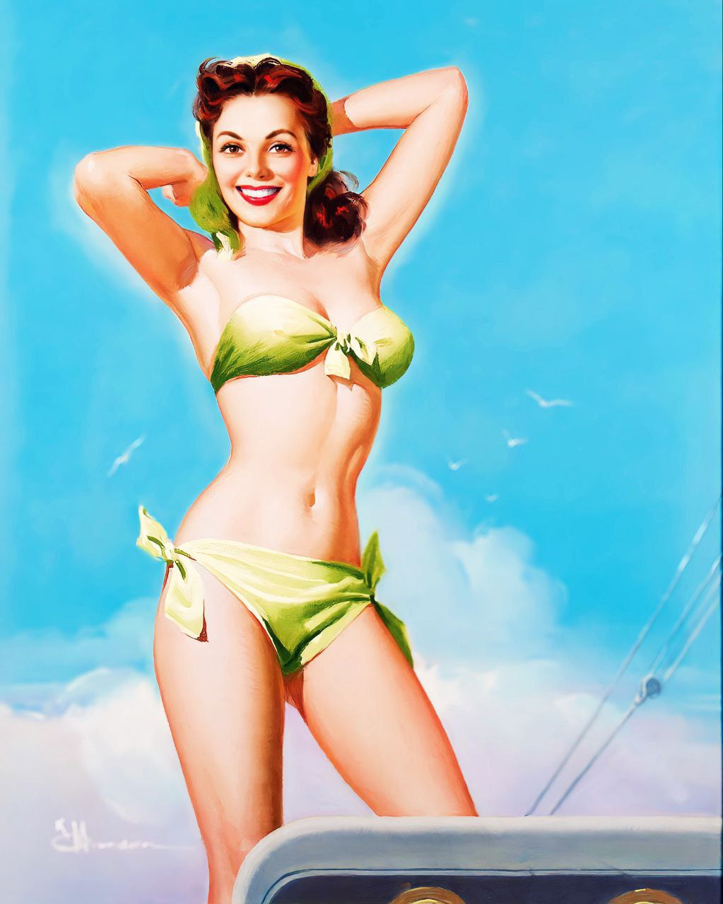 Пин ап привлекает и давно имеет своих поклонников. Особенно интересно, когда предлагают какие-то новые сюжеты вроде Белоснежки и семи гомов или русалочки, обучающей рыб в школе.