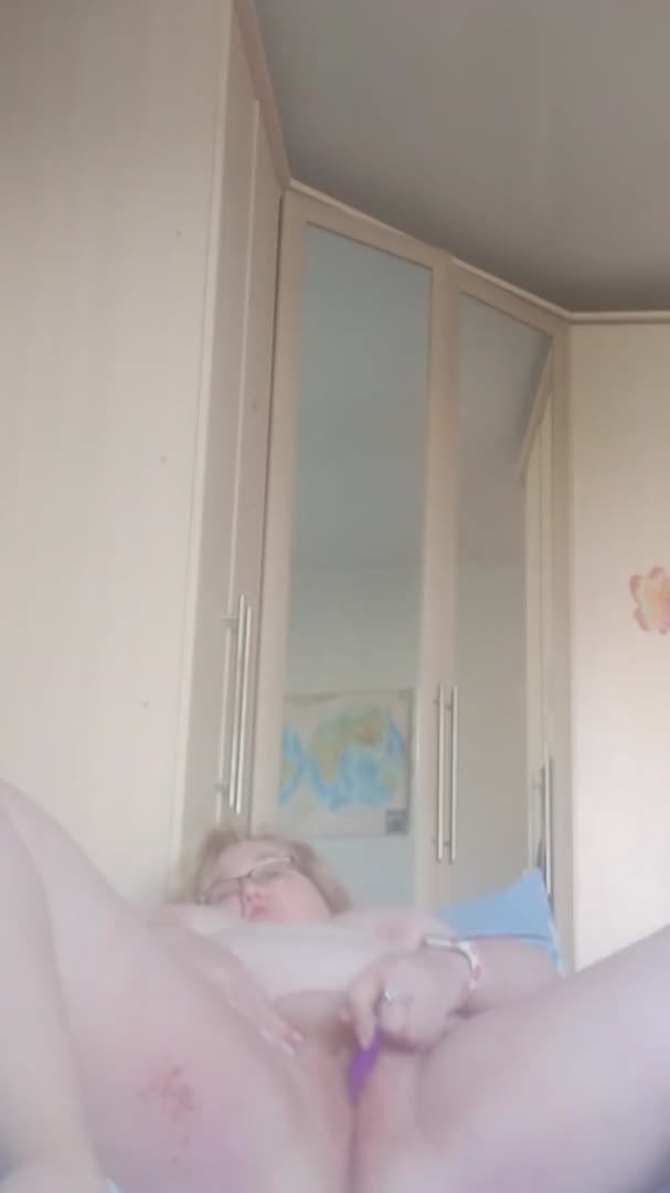 Немолодая женщина в теле мастурбирует свою бритую писечку лёжа на кровати!