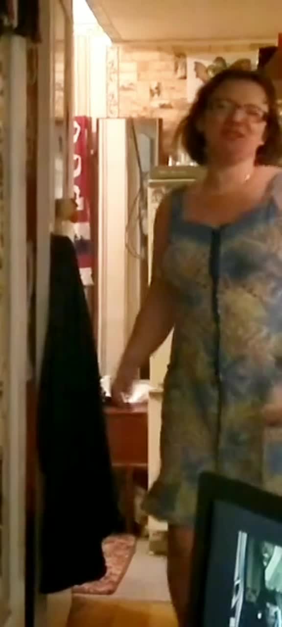 Дефилирует не плохо! Своим платьем шубуршит! Сиськи сильно выставляет, одеваться не спешит!