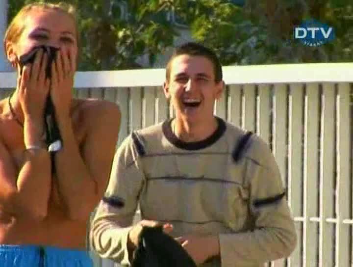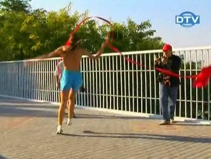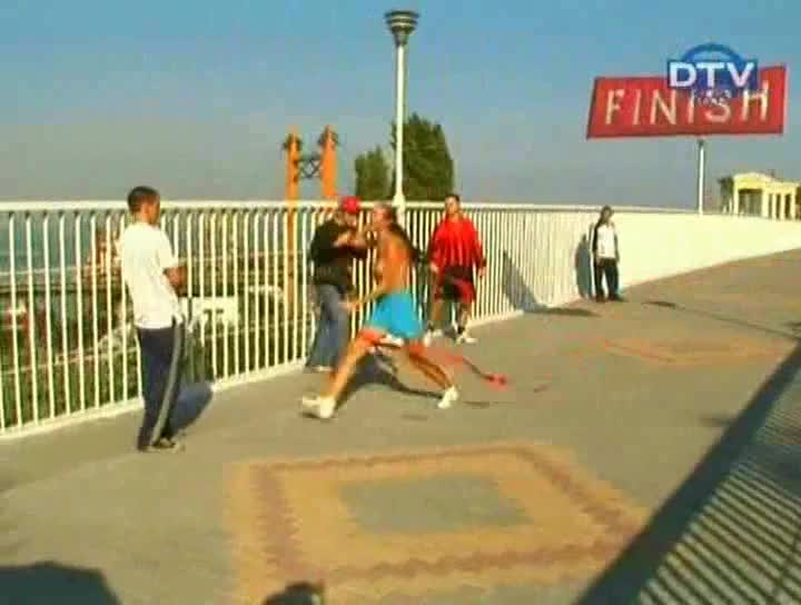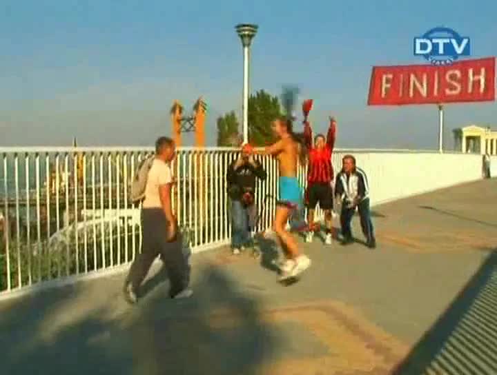серия «голый и смешные», в которой девушка в конце марафона снимает рубашку и начинает прыгать от радости с голых сиськах, шокируя прохожих.