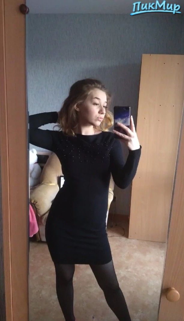 Маленькое чёрное платье ей идёт. И лобок, со стрижкой. И отражение в зеркале. Сняла отлично.