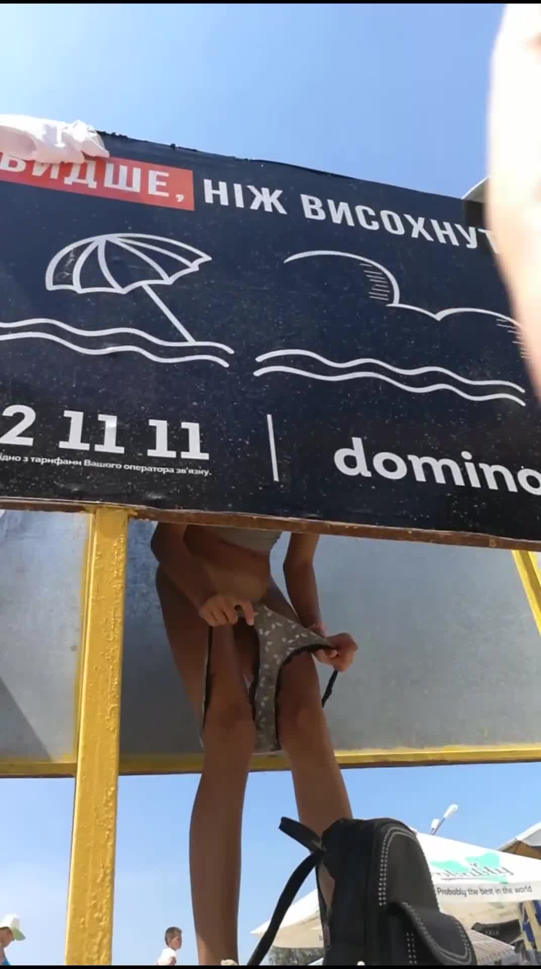 Снимает как переодеваются в кабинке на пляже в Одессе