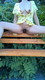 Молодая и сексуальная позирует без нижнего белья прямо в парке на скамейке