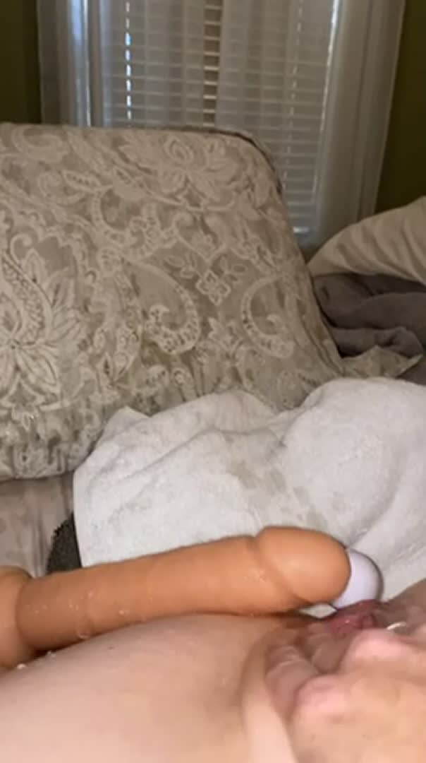 Девушка мастурбирует игрушками и рукой и доводит себя до оргазма