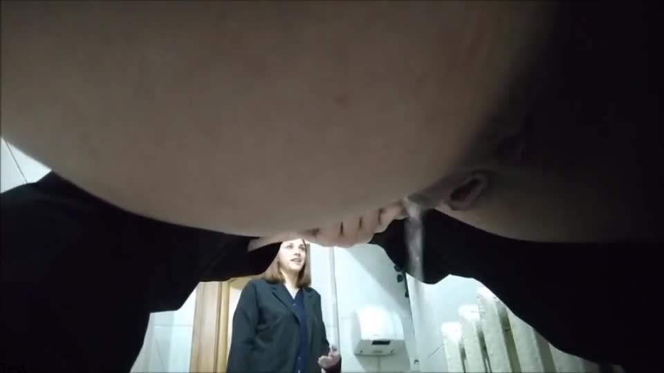 Две женщины зашли пописать в туалет,где их сняла скрытая камера.