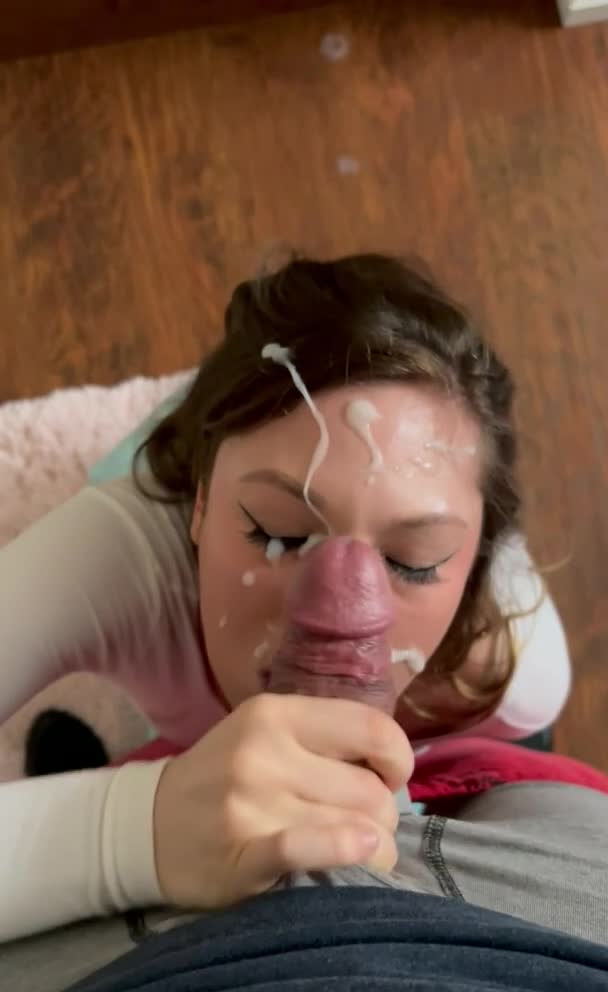 Сперма на лице девицы, которая любит когда кончают прямо на неё.