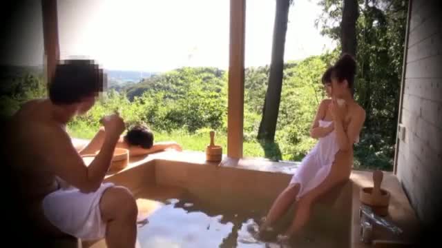 На горячие источники приехала семейная пара и там же был одинокий парень. Пока все сидели, опустив ноги в теплую воду и пили легкий спиртной напиток, мужу захотелось вздремнуть с внешней стороны стенки бассейна. Одинокий парень решил поухаживать за его женой. Он подошел к ней поближе и откинул с себя легкое покрывало, выставив на ее обозрение свой обнаженный член. Член имел приличный размер и дергался от возбуждения то вверх, то вниз. Заметив, что дама заинтересовалась его членом парень предложил ей потрогать его рукой, он сам положил ее ладонь на член, а сверху свою ладонь и посредством своей руки начал двигать ее ладонь вдоль своего члена, надрачивая его. Через некоторое время он убрал свою руку, а дама продолжала двигать свою ладонь вдоль члена, видимо ее завораживал его большой упругий хуй в ладони. Далее парень прижался головой между ее ног и сделал ей возбуждающее куни. После этого возбужденная дама уже без всякого принуждения заглотила ротиком его член. Парень поставил ее раком и засадил ей между ног, дама иногда поглядывала на спящего мужа, но вскоре полностью сконцентрировалась на своих внутренних ощущениях. Они поменяли еще несколько поз и женщина, забыв про мужа громко стонала от удовольствия, муж так и не проснулся.