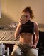 А на полу такой же бардак, как и у нас. А грудка у неё, конечно, классная. И главное дело старается телефоном закрыть личико.