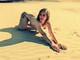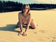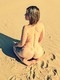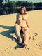 На песочке, у реки демонстрирует свое тело и волосатую промежность.