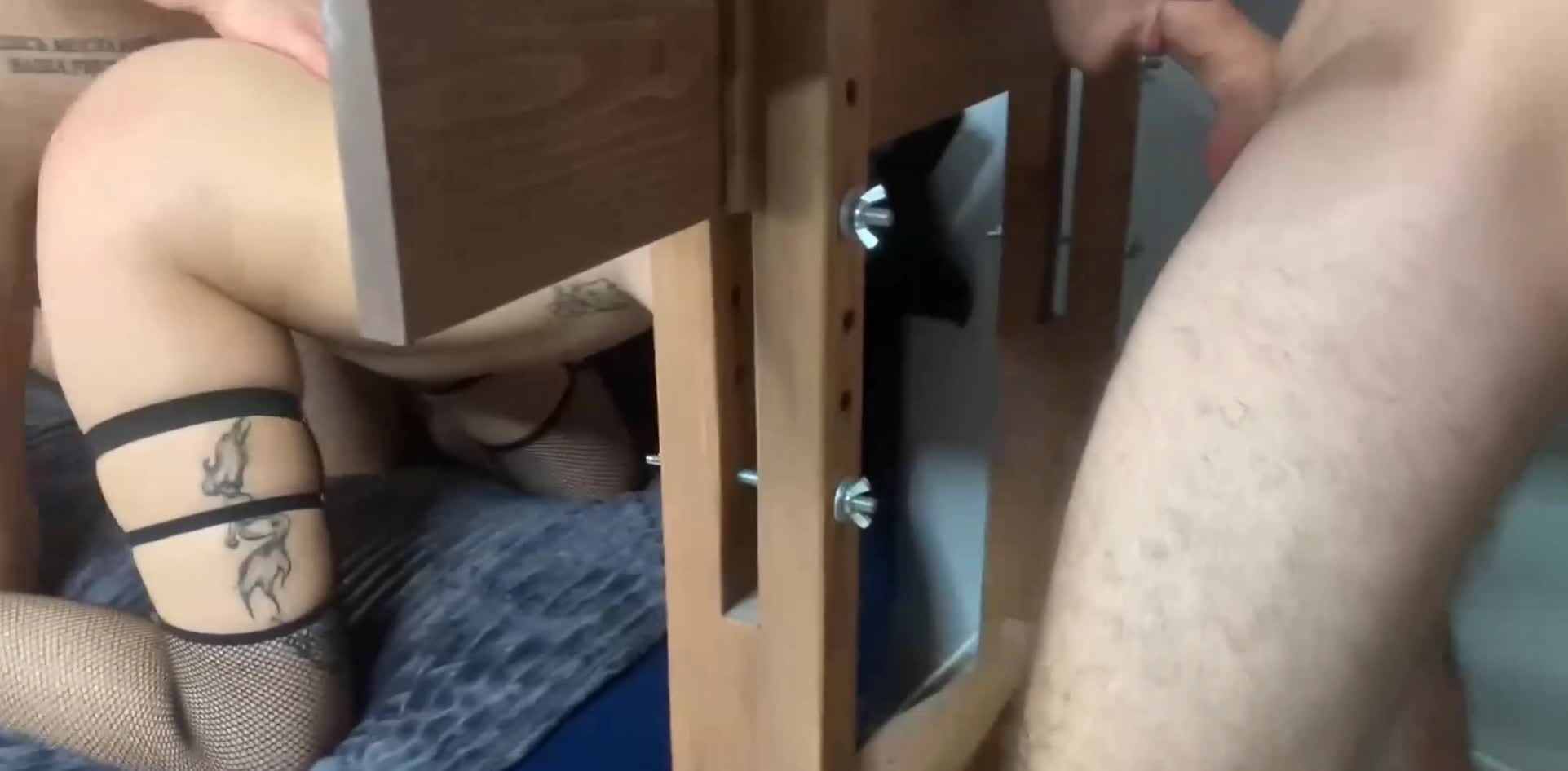 Шикарную девочку зафиксировали в специальном оборудовании и поимели в два члена,один в рот,второй сзади.