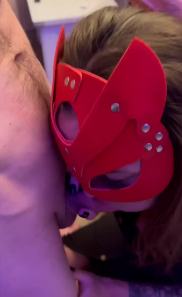 Симпатичная Вика пока стесняется сосать на камеру без маски,скрывающей лицо. Но сосать она умеет,как показывает данное видео.