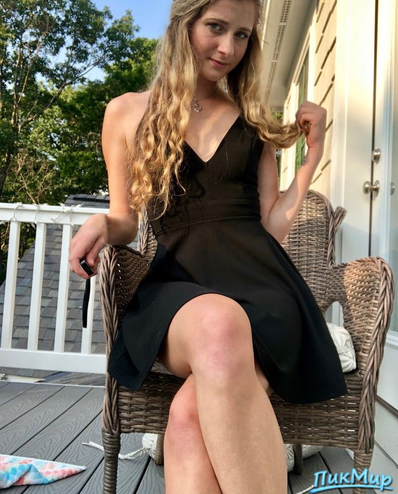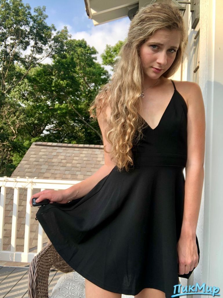Маленькое чёрное платье. А под ним ничего. Это так возбуждающе. Но смотрит она как-то не очень весело.