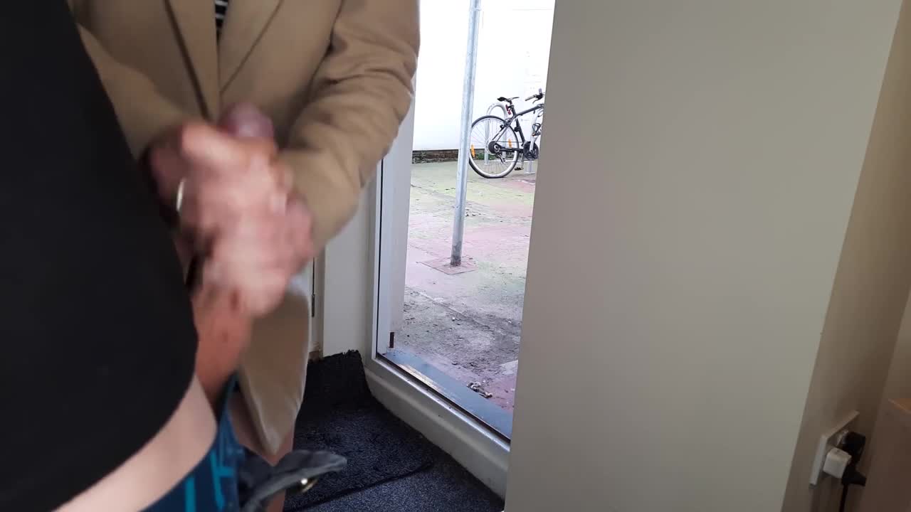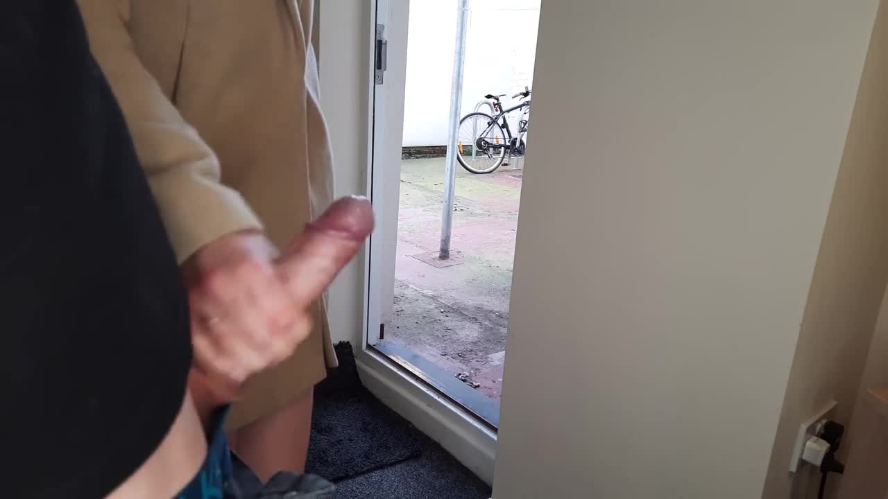 Мужик гоняет свой елдак с открытой дверью,девушка зашла спросить где тут остановка до Парижа и не смогла отказаться передёрнуть такой перец