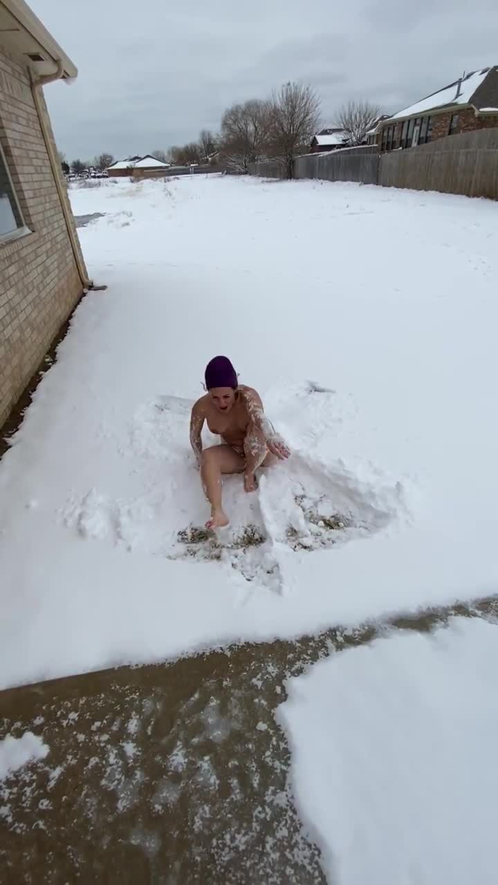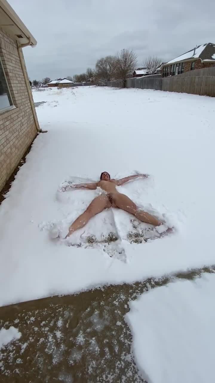 короткий ролик как зрелая женщина с сексуальным телом ложится в снег