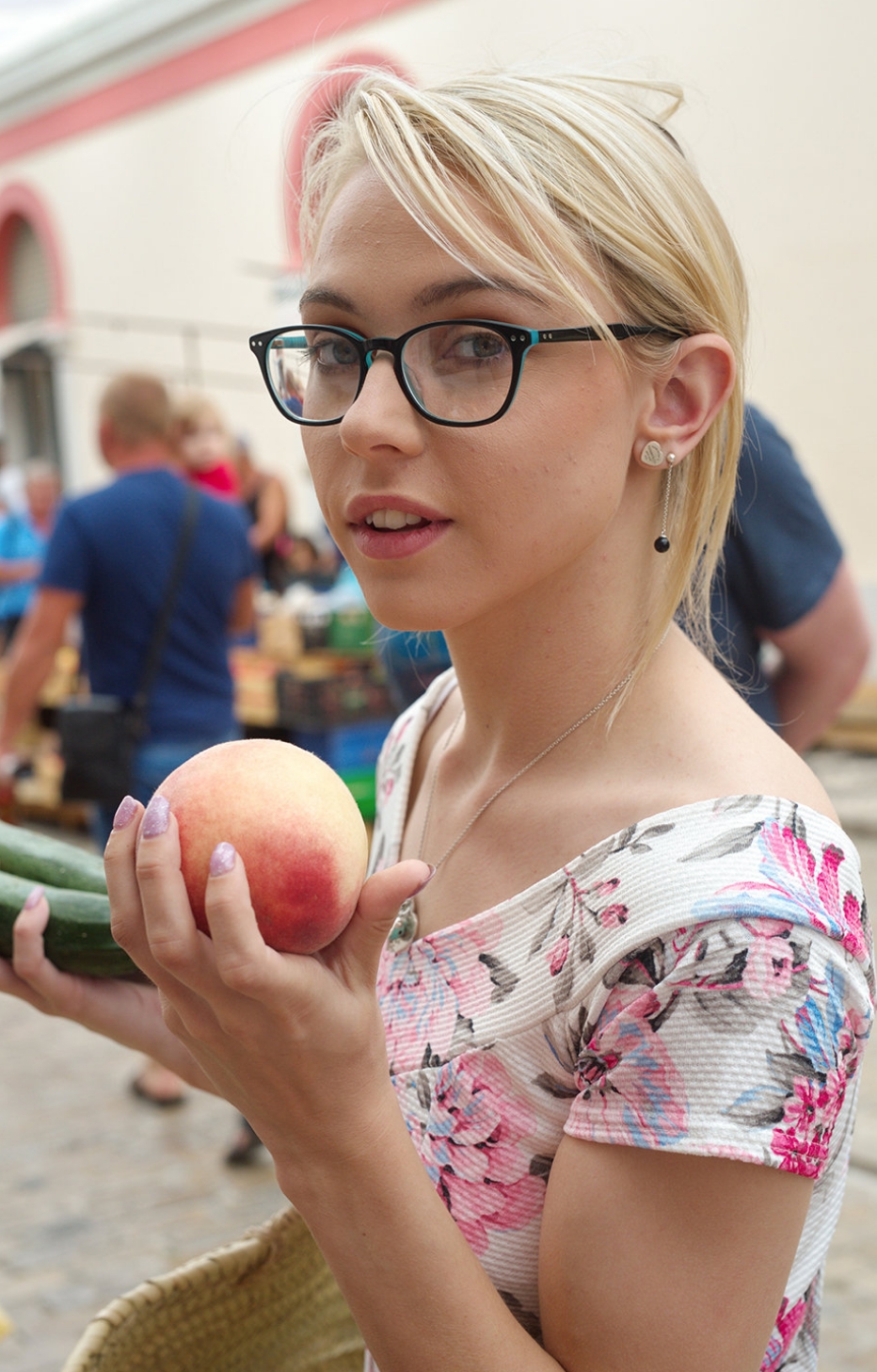 Девка по рынку долго гуляла. Для письки игрушку себе выбирала!