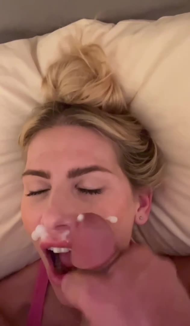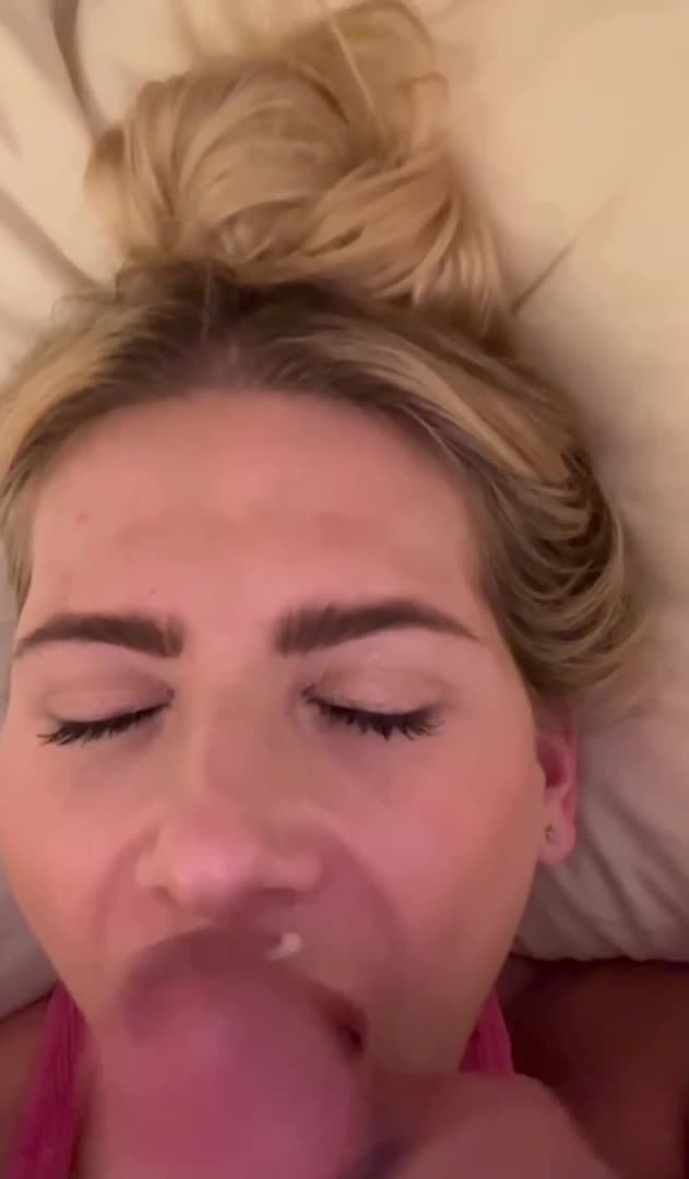 Кончил на белобрысую шлюху, которая ему отсосала.
