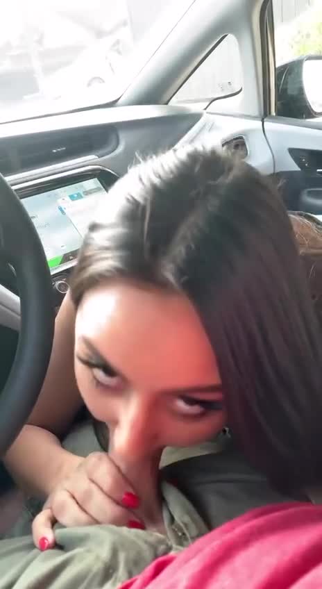 Девочка с красивыми глазами делает отличный минет в авто средь бела дня.