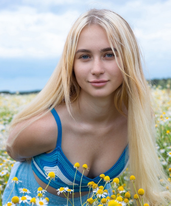 Классная блондочка в ромашках...рачком особенно прелестна!