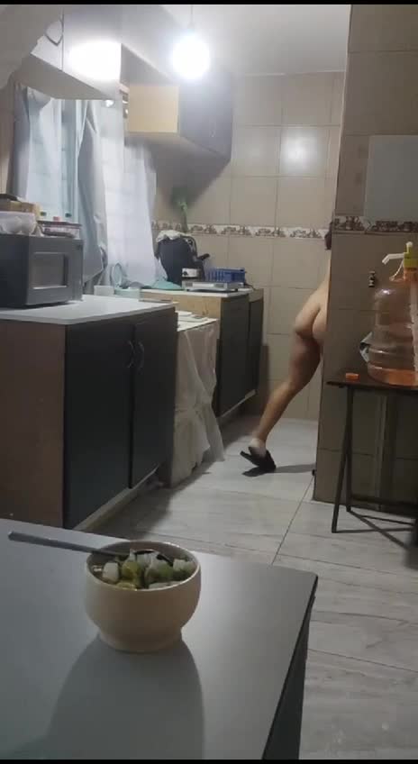 Наверное приятно, когда вам завтрак подаёт такая соблазнительная дамочка на которой из одежды только носочки и тапочки
