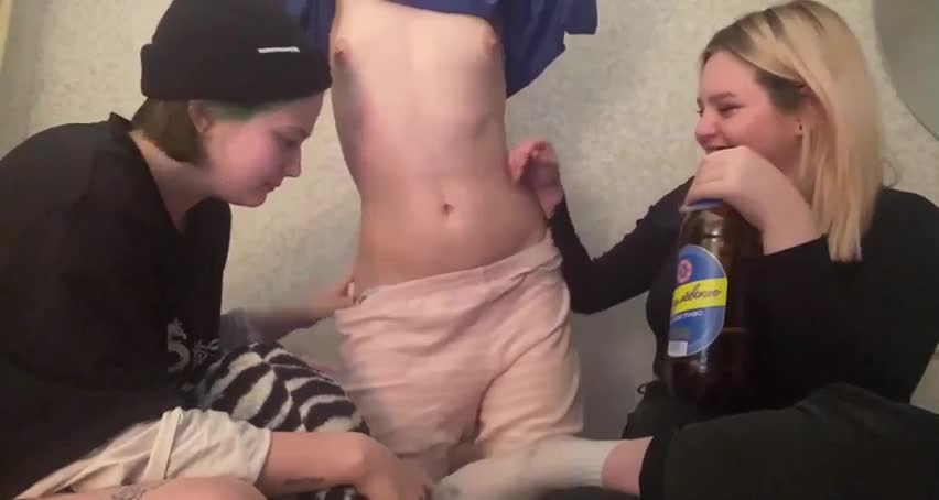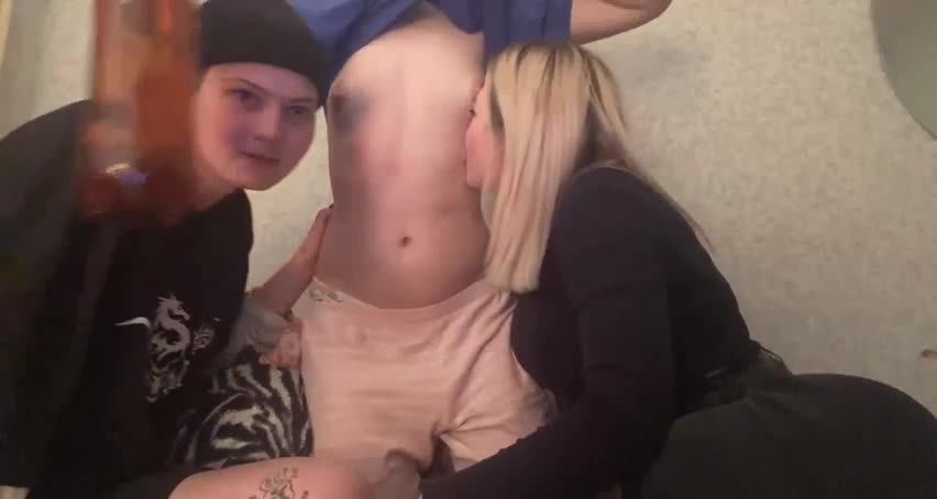 две подружки целуют третью оставляя на её теле засосы показывая по камере