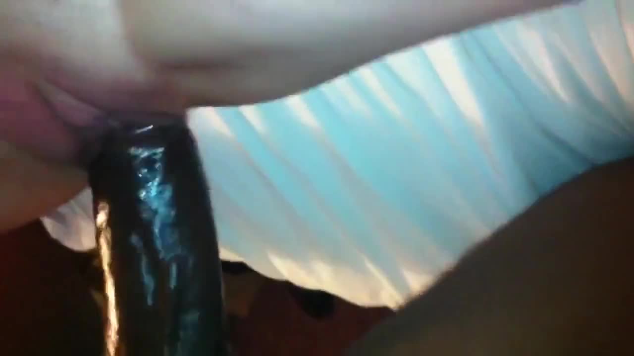Жена развлекается с угольком, пуская в свою киску чёрную анаконду без резинки. Муж рядом и всё фиксирует на камеру.