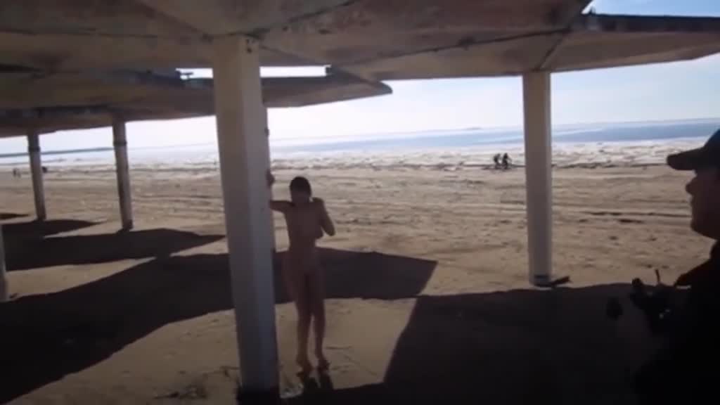 На пляже голая девушка смотрится более привычно чем на улицах оживленного города, но ее прекрасное тело и и очаровательная грудь и тут привлекает пристальное внимание