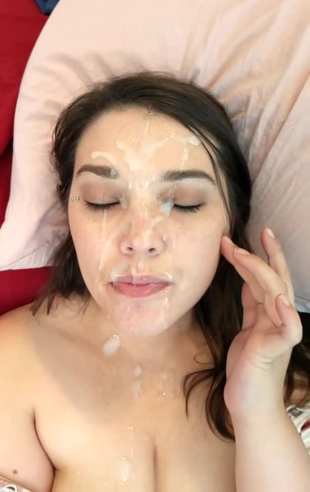 Красивая баба получает на лицо ьёплую сперму от мужа.