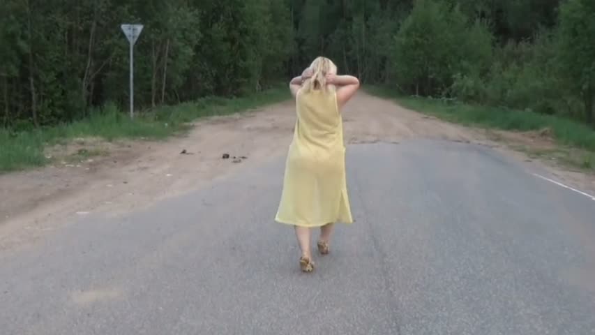 Подвыпившая женщина возвращаясь по дороге домой из гостей, захотела немного поиграть.