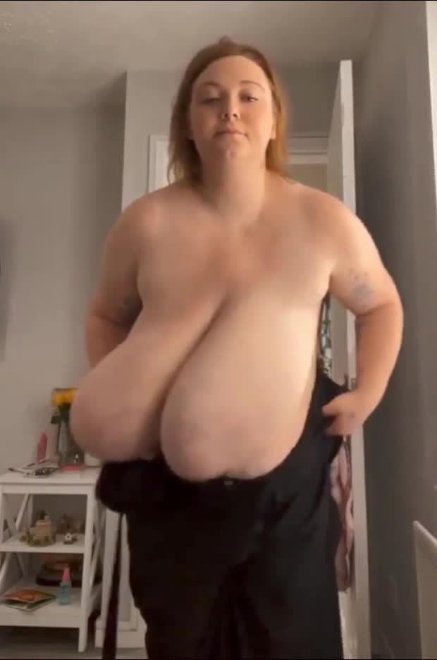 У девушки огромные висячие груди, и она ими трясёт.