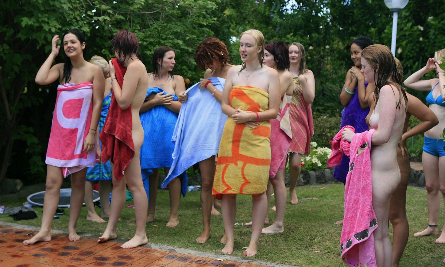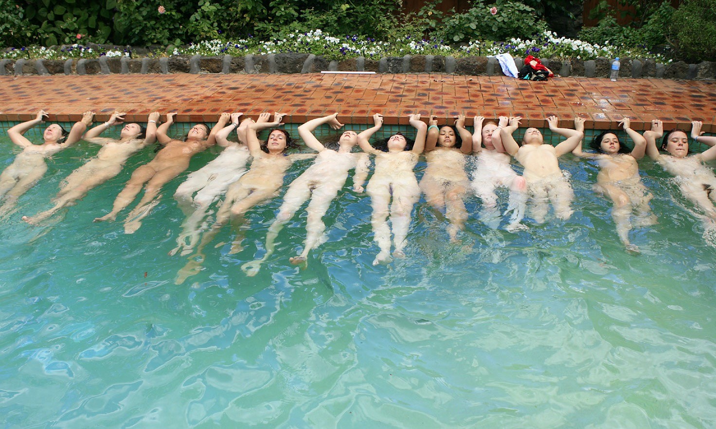 голенькие молодые девушки купаются в бассейне