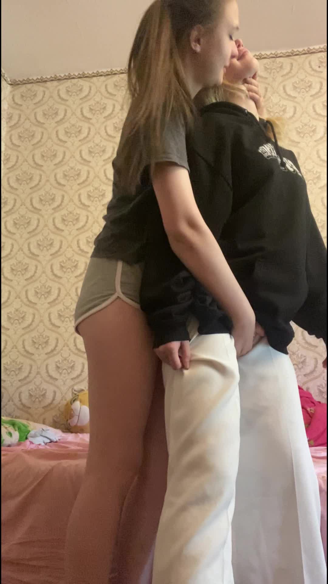 Девки на камеру поиграли. Ловко огурчик в попку совали