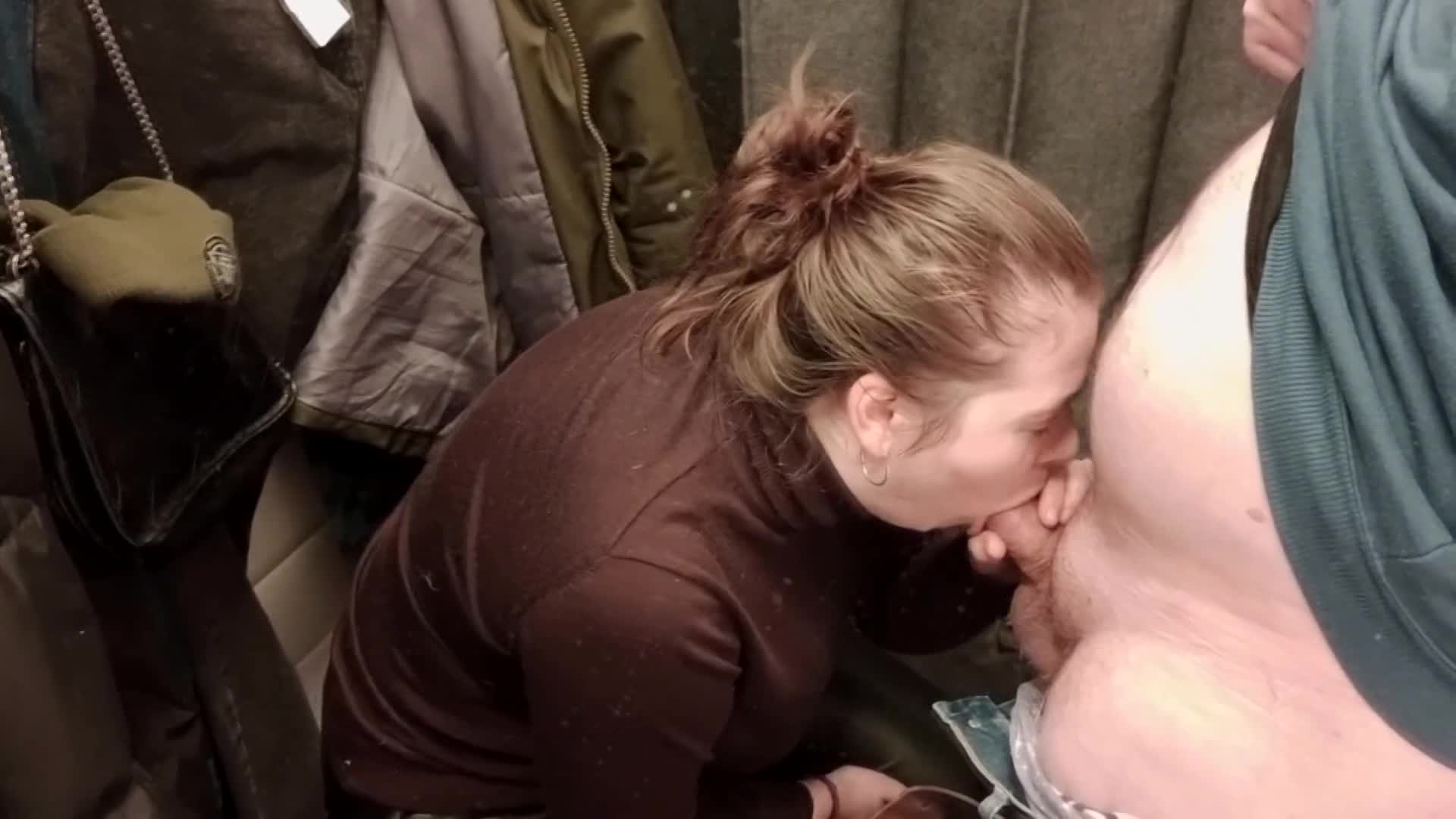 Набрала побольше вещей для примерки и сделала мужу минет прямо в примерочной кабинке.