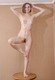Голая девушка позирует на маленком столике