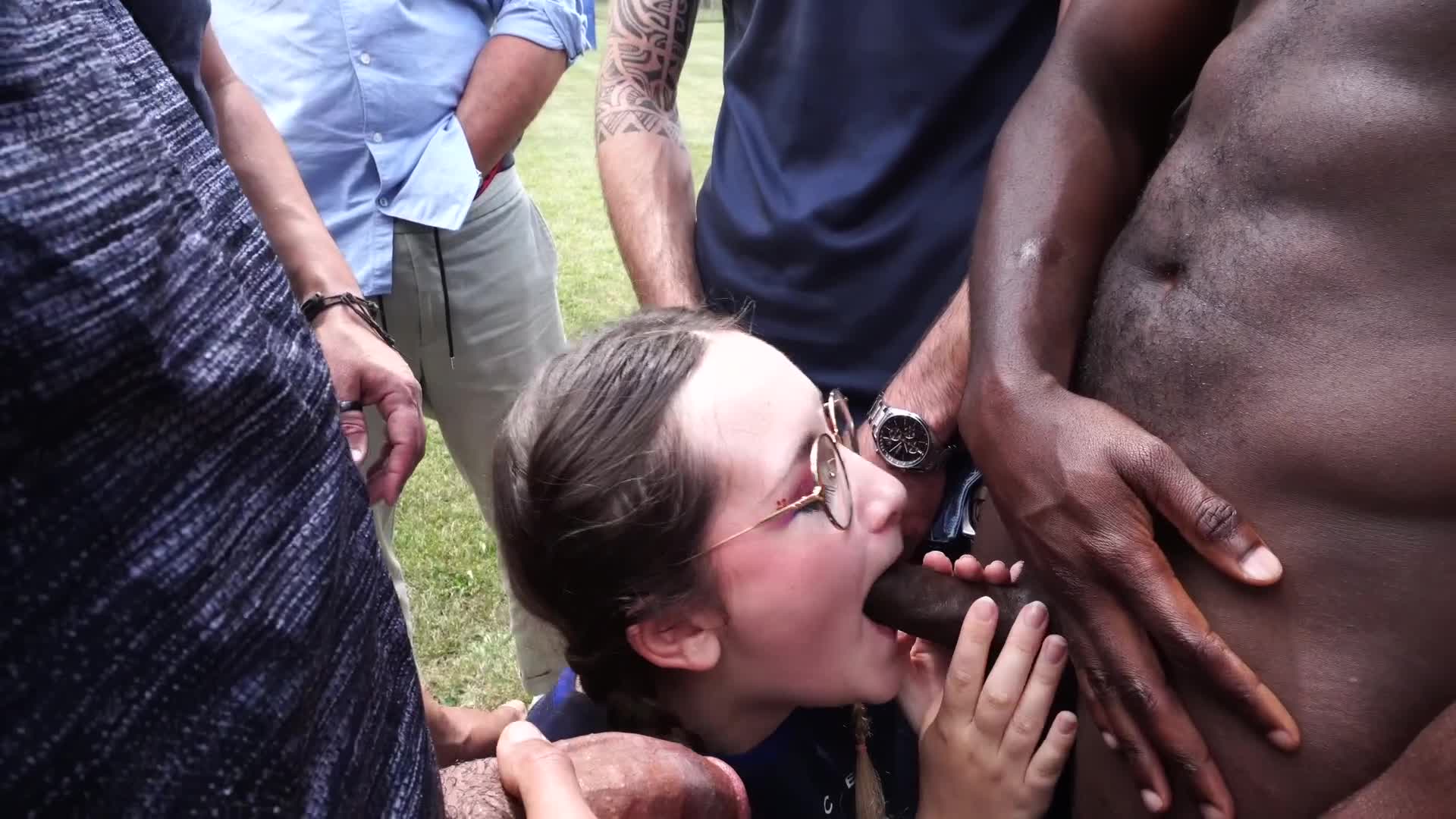 Нравится девчонке очень негритянский хуй сосать. И количеством огромным ее вряд-ли испугать. Она рада, что так много хуев тычут ей в лицо. Все ей хочется потрогать, все охота пососать. И конечно же не против их в себя она принять.