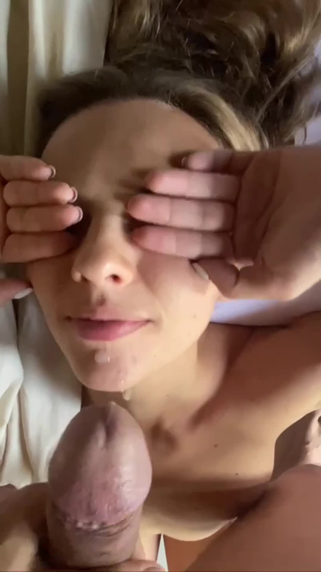 Прикрыла глазки от спермы руками