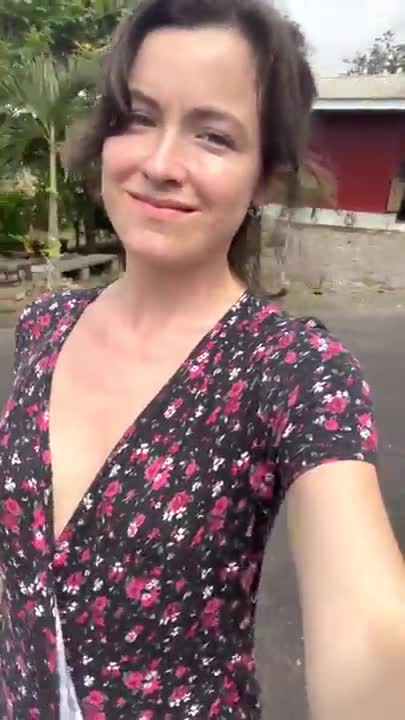 Симпатичная девочка оголилась на своей улице около дома. Красивое у неё тело.