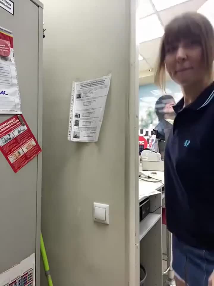 Малышка так перевозбудилась от работы что решила в подсобке немного выпустить пар.